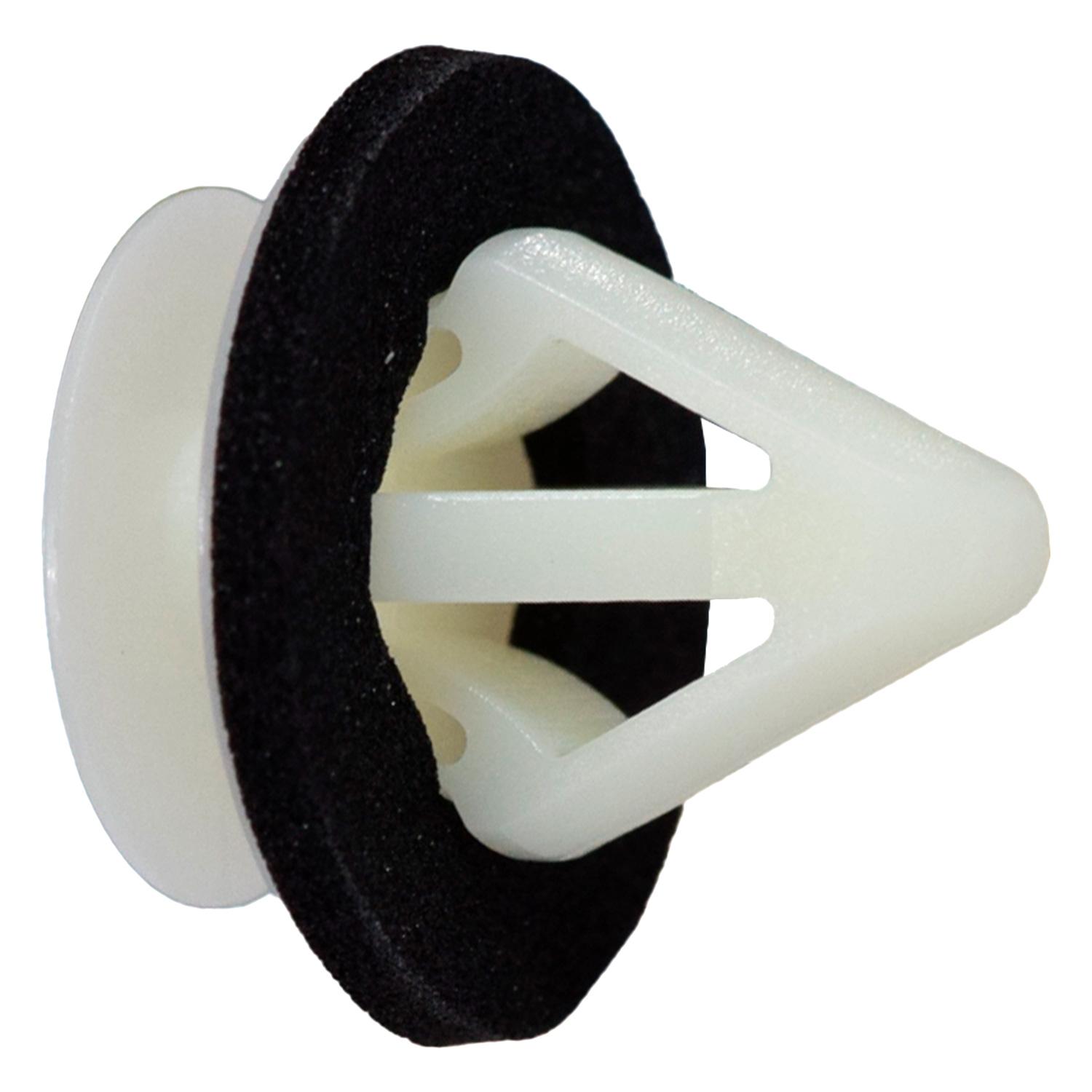 Grapa de tapicería para Mazda CX-7 y uso universal en varios modelos, fabricada en nylon blanco. Diseñada para sujetar paneles internos, molduras y forros con ajuste firme.