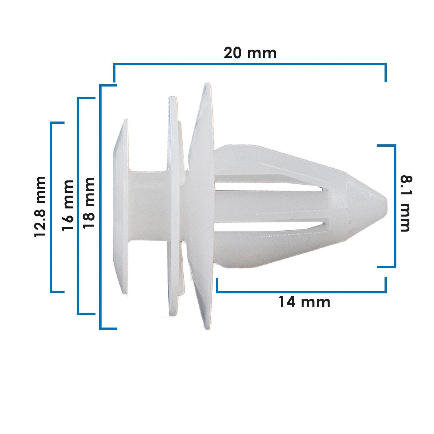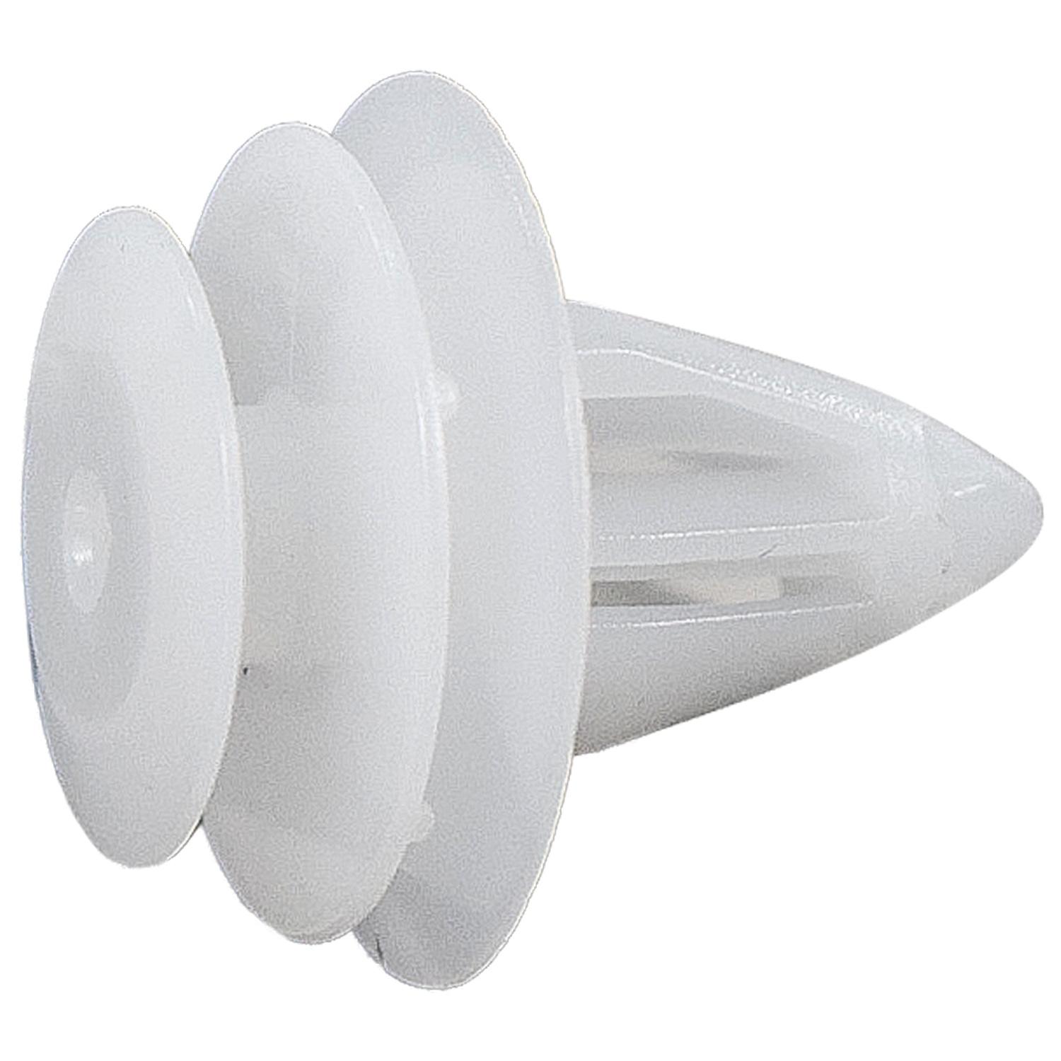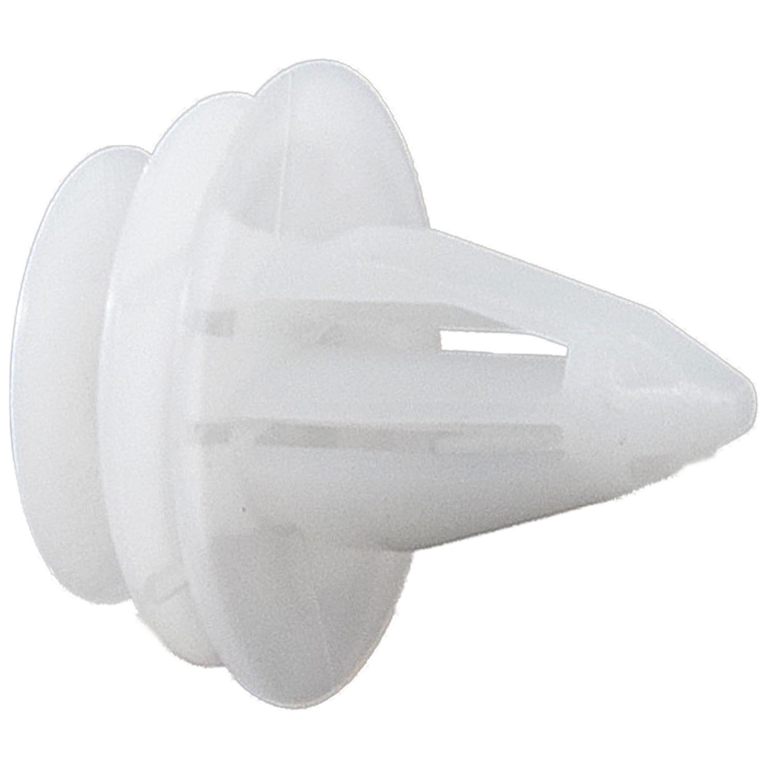 Grapa tapicería universal; nylon blanco. Compatible con Chevrolet Captiva 08-15, Hyundai Accent 19-22, Nissan Micra 04-07, Sentra 00-06 y otros.