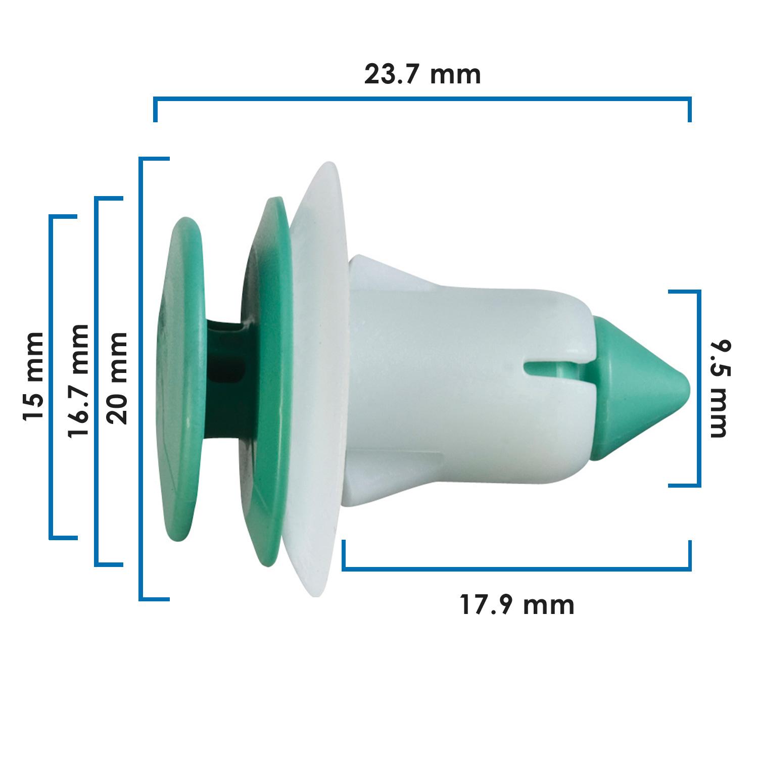 Grapa tapicería Chrysler Voyager 01-03, nylon verde. Fijación segura de interiores. Pieza individual.