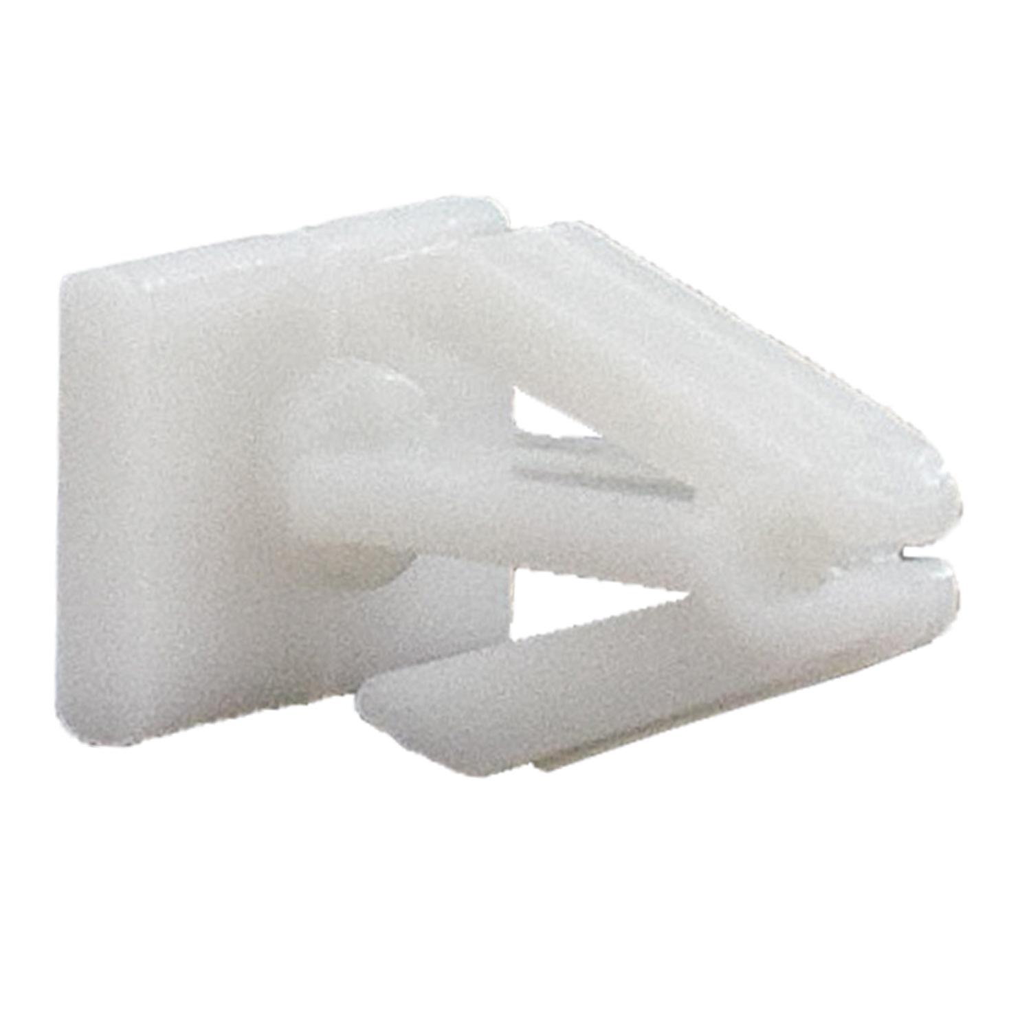 Grapa de fijación para moldura exterior Chevrolet Chevy C2. Clip de nylon diseñado para asegurar la moldura de la carrocería al panel del vehículo, proporcionando una sujeción firme y duradera.